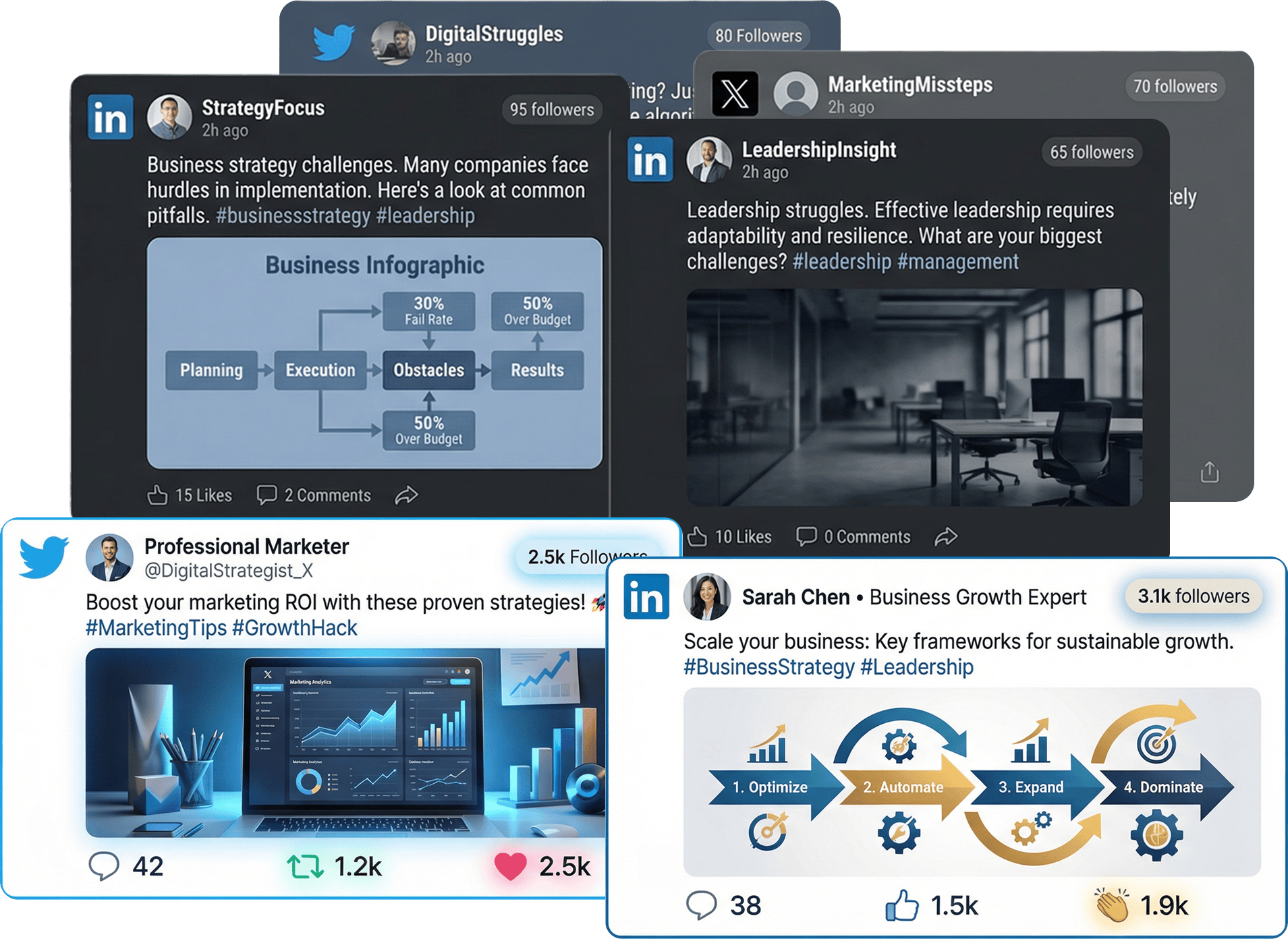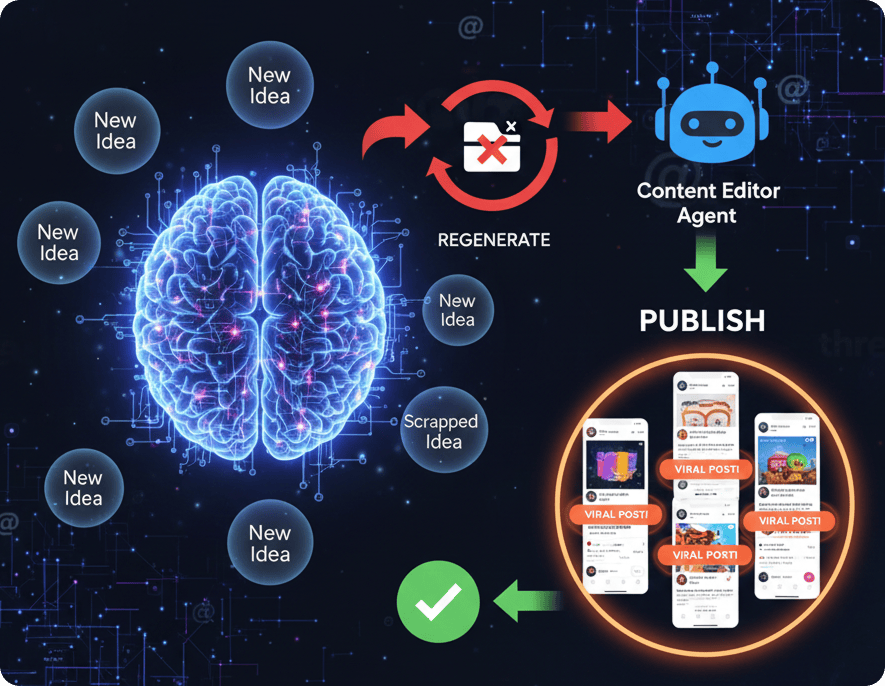 Agents generate, refine, and schedule daily posts automatically.